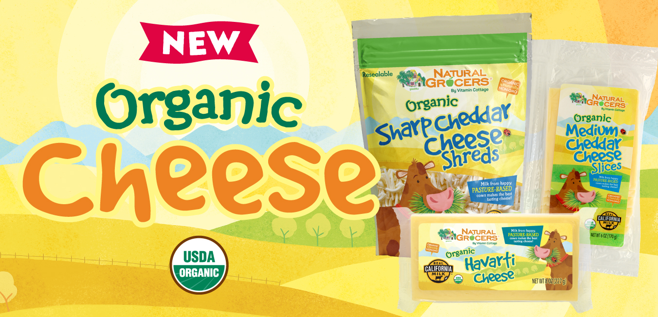 Our cheese is pasture based and certified organic, without a hormone or antibiotic to be found. Each bite is silky smooth with nothing artificial to smother its natural flavor and color. When it comes to rennet, we use an organic-approved alternative to the animal kind. When it comes to the planet, our cheese-making partners excel at recirculating water and recycling cardboard. Havarti Slices or Parmesan Shreds, Mexican Blend or Sharp Cheddar—we have all your favorite ways to say, “cheese.” Now smile for the camera, it’s time to party because Natural Grocers just put its name on the best cheese in town.