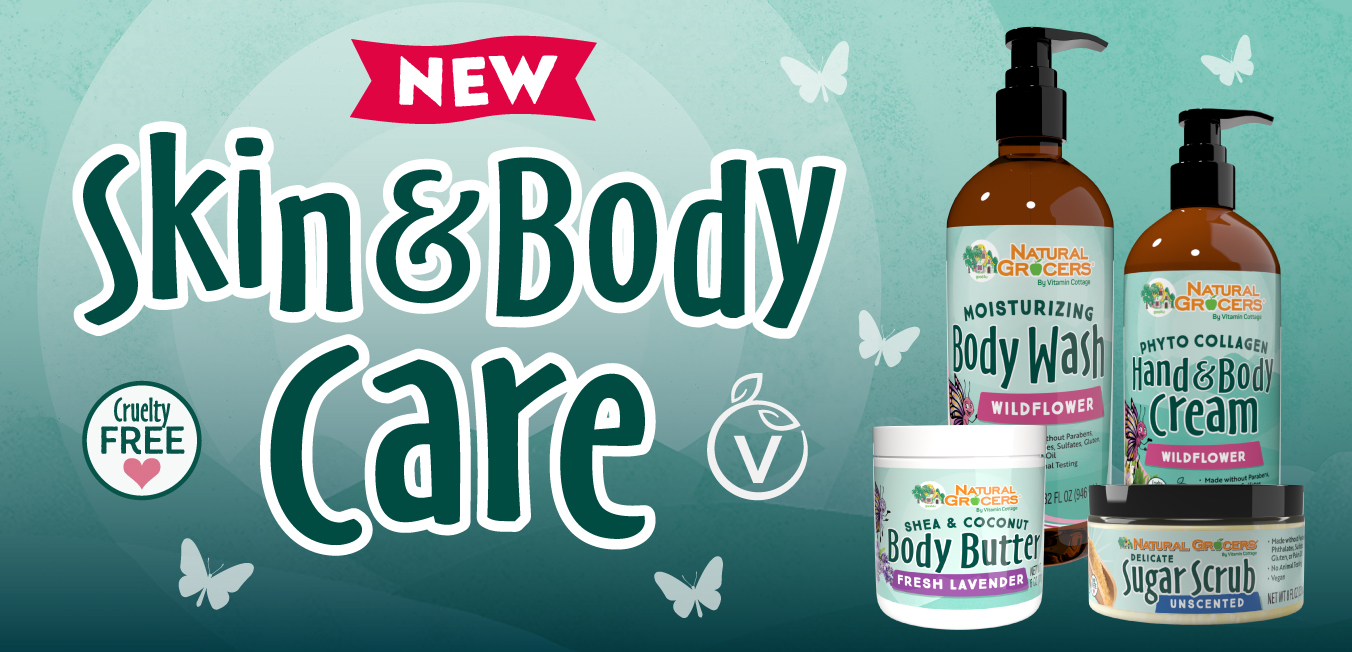 Love the scent of wildflowers and the feeling of silky, smooth skin? Then you’ll adore the Natural Grocers Brand Skincare collection! This lineup of plant-based body washes, scrubs, butters, and creams is handcrafted in the U.S. with small-batch quality, minimally processed ingredients, and rigorous testing for purity and potency. Our Body Creams feature a unique, acacia-tree-derived phyto-collagen to enhance hydration and promote elasticity.